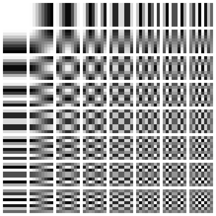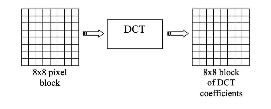 JPEG does this but in 2D for each of the YCbCr channels. We chunk up an image into 8x8 ‘blocks’ and then decompose it into some basic patterns that are made up of cosines with various periods.