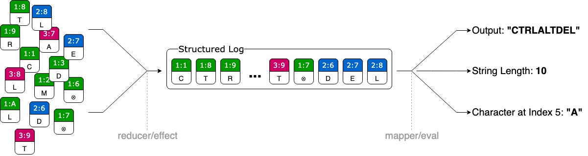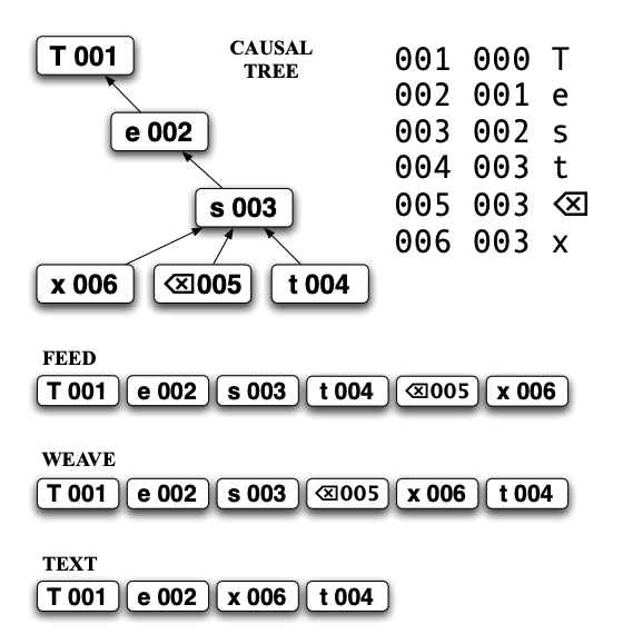 (id, causing_id, letter).- Any set of changes can be represented as a set of atom removals and insertions.
