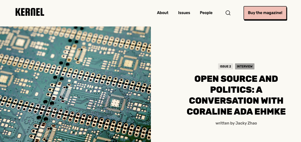 - A conversation with Coraline Ada Ehmke on the politics of open source software.
