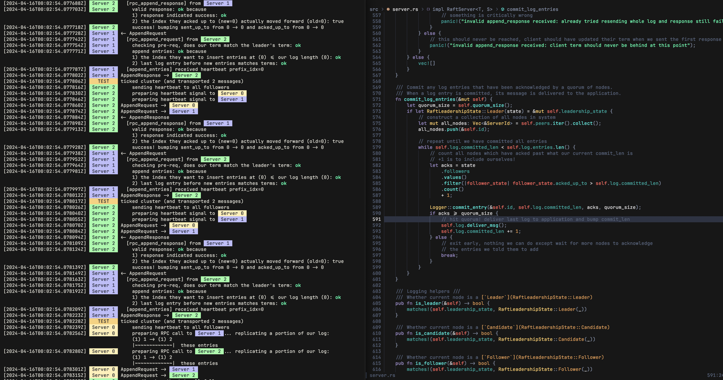 - A minimal implementation of the Raft Consensus Algorithm in Rust with a focus on readability/understandability. This project was created as an exercise in implementing and learning about distributed systems.